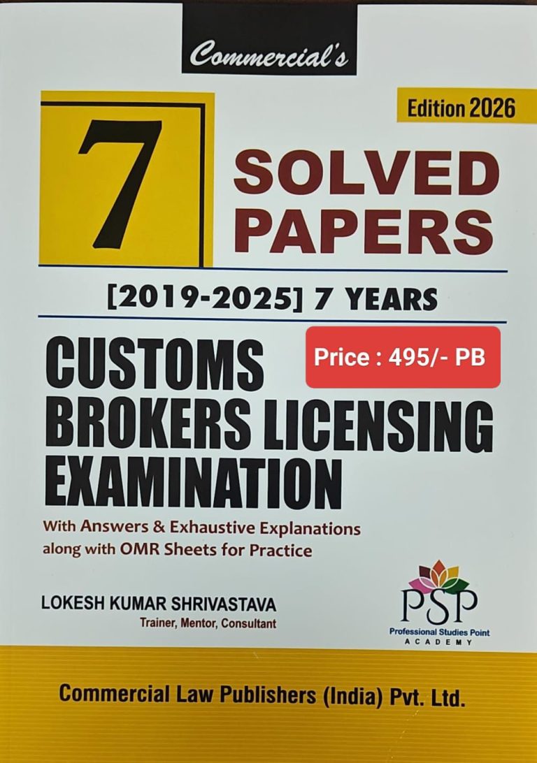 This edition of Customs Brokers Licensing Examination – 7 Solved Papers (2019–2025), updated for 2026, provides a comprehensive and practice-oriented resource for aspirants preparing for the Customs Brokers Licensing Examination conducted under the Customs Act, 1962. Designed to strengthen conceptual clarity and examination readiness, the book compiles seven years of actual solved papers, each accompanied by detailed answers and exhaustive explanations that reflect current customs procedures, regulatory requirements, and examination trends. This edition also includes OMR sheets for hands-on practice, enabling candidates to simulate the real test environment and improve accuracy and time-management skills.